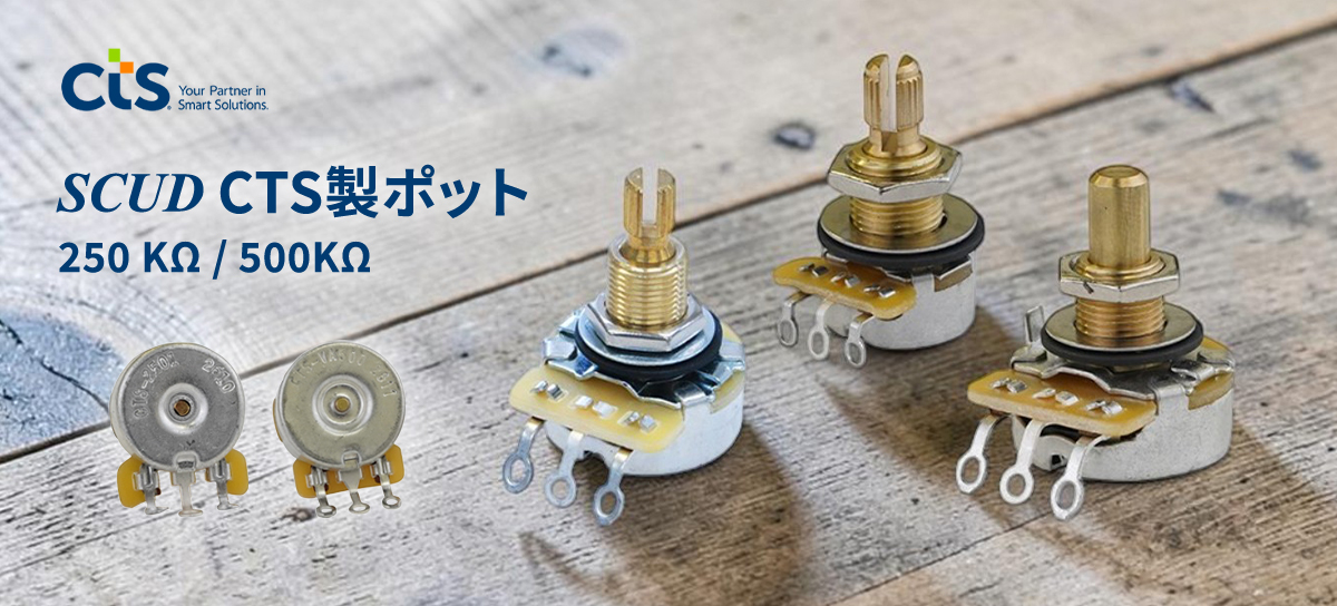 お客さまから寄せられたご意見、要望を分析し、今回CTSの新ラインナップを追加する運びとなりました。「へそ付き」と呼ばれたりするヴィンテージタイプから16mm径のミニポット。300キロΩのポットなど、多様なアイテムが追加されています。