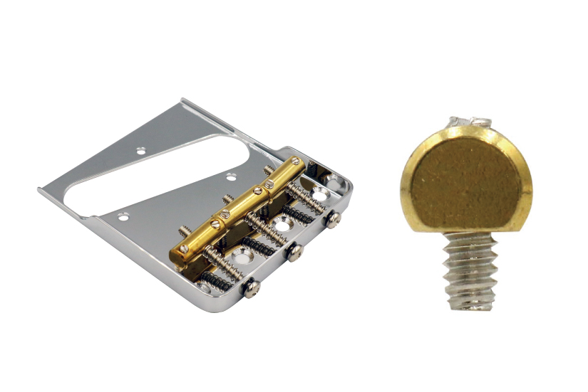 一見普通のTLタイプブリッジに見えますが、サドルの円柱の下端がフラットに削り込んであります。これによって弦高を更に下げる事が可能です。