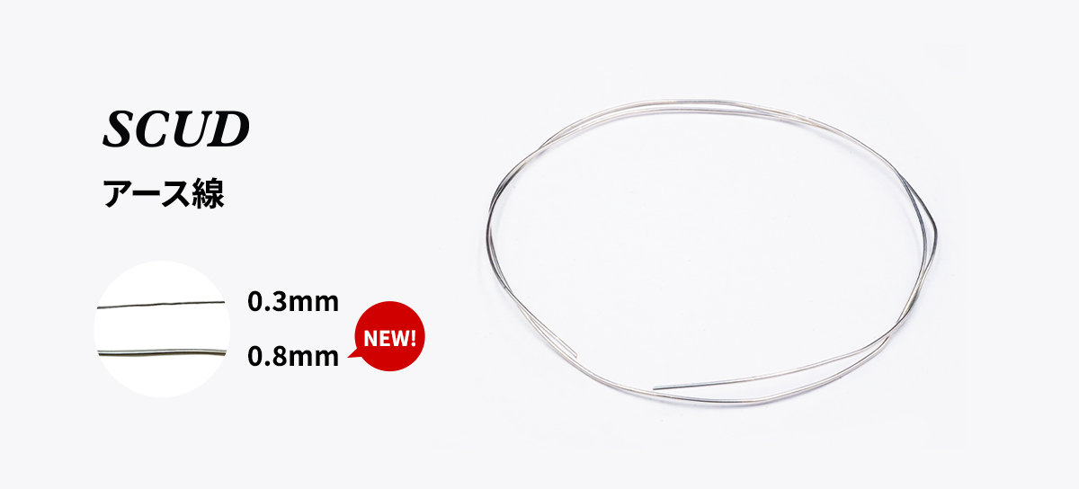 エレキギターに欠かせないアース線は、ノイズを逃がし、安定したサウンドを支える重要な役割を担っています。ポットやスイッチ間をつなぐ細い配線から、ブリッジアースのように強度と確実性が求められる部分まで、用途に応じた選択が仕上がりを左右します。既存0.3mm(CBL-50E)に加え、0.8mmのアース線がラインナップに加わりました。
