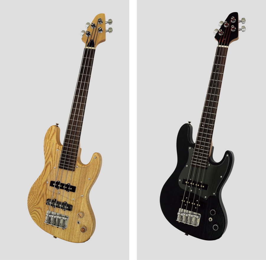 トラディショナルなスタイルのボディにはアッシュ材を使用。全長81cmの小振りなサイズからは想像できない迫力のある重低音を生み出します。重量のあるアッシュ材ですがこのサイズであれば取り回しもしやすくちょうど良い重量バランスに仕上がっています。スケールは584mm(23”)とショートスケールのギター並みに短く、女性やお子様にも演奏しやすいだけでなく、通常スケールのベースではありえない運指ができるため発想とテクニック次第ではとんでもないトリッキーなプレーが可能です。